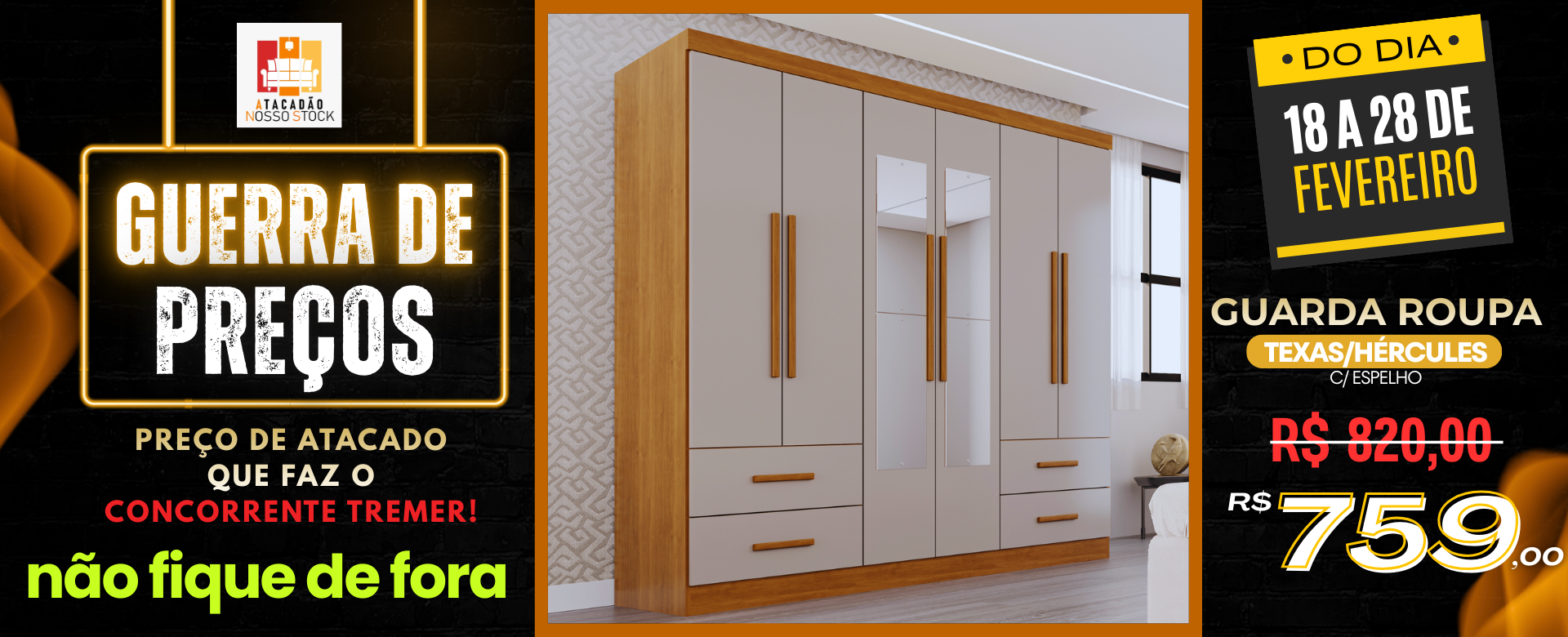 GUARDA ROUPA PARIS 1.85 COM 8 PORTAS 6 GAVETAS E PUXADORES EM MADEIRA – EVIDÊNCIA
