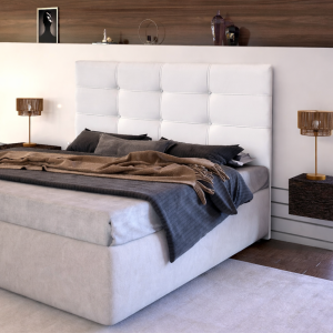 CABECEIRA IRIS CASAL ESTOFADA C/ DETALHE RIPADO E 2 MESAS CABECEIRA – 100%MDF – DDORO