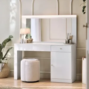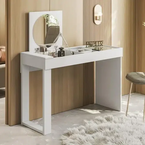 Escrivaninha Penteadeira Play Espelho Basculante e Vidro Branco Fosco