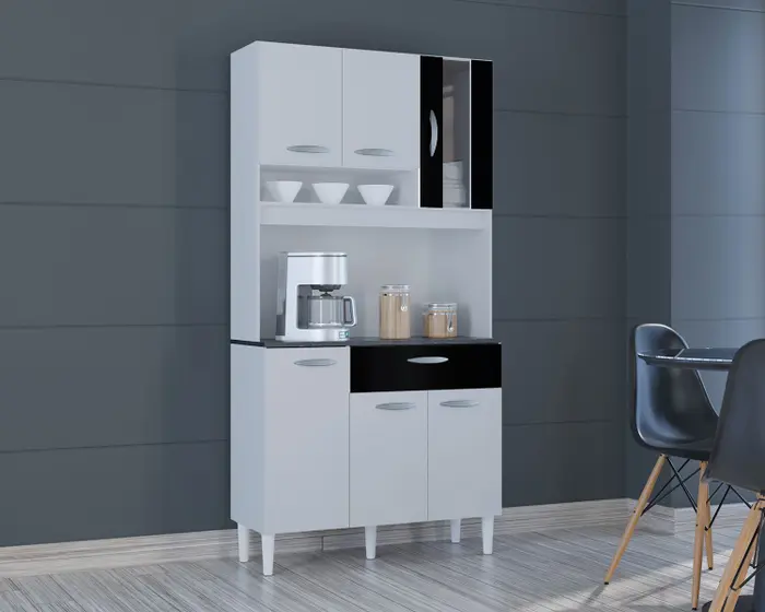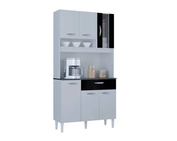 Produzido com material de primeira linha, possui estrutura em mdp com acabamento em Pintura uv, composta com 6 portas sendo uma de vidro e 1 gaveta.