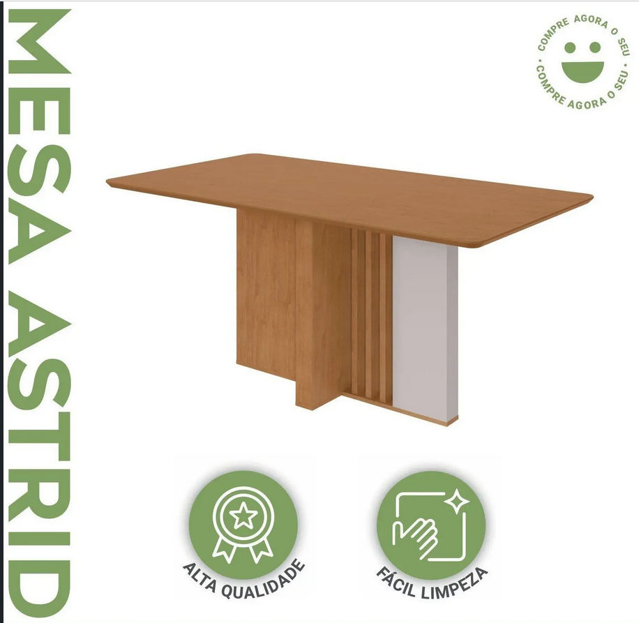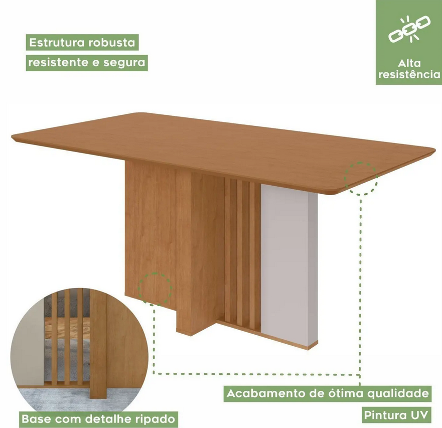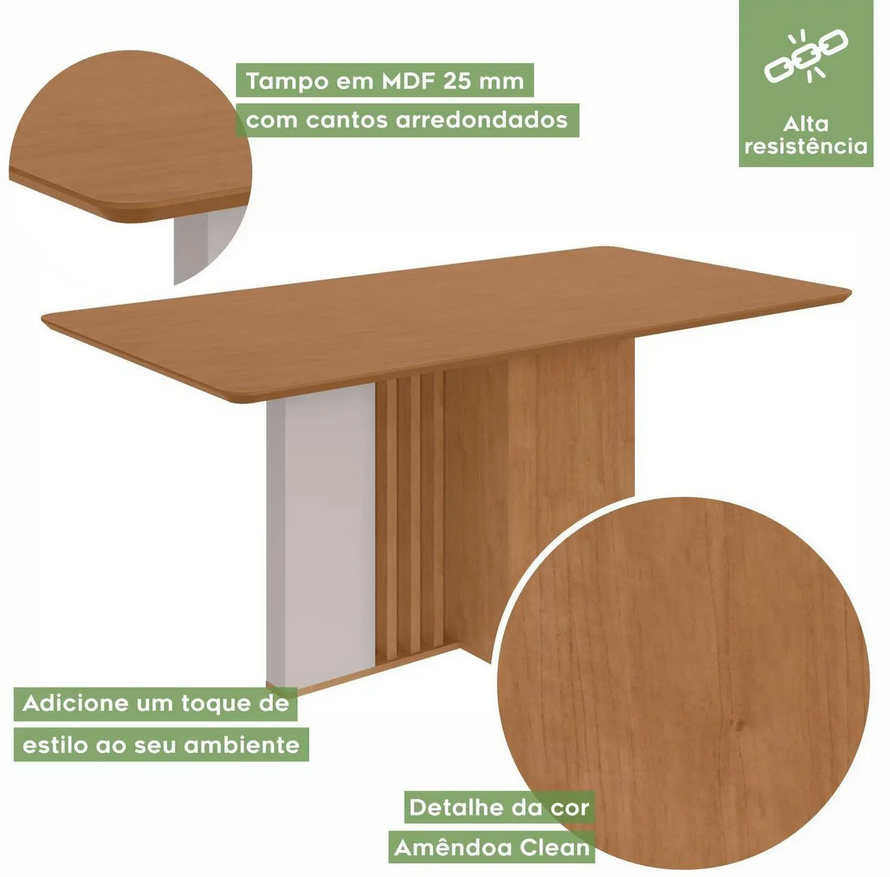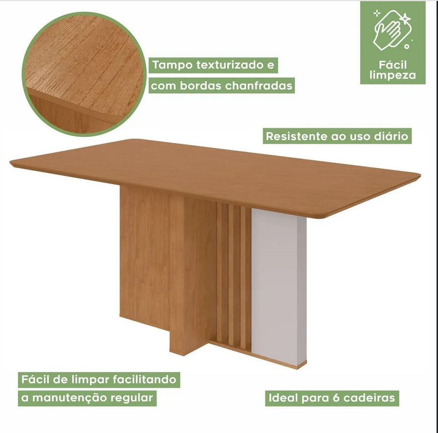 Mesa avulsa, não acompanha cadeiras. Sua sala de jantar ou cozinha precisa ser bem equipada para deixar os momentos de confraternização ainda mais especiais, seja acompanhando o dia a dia ou recebendo os amigos em diferentes ocasiões.Com nossa mesa com tampo amplo, você vai conseguir acomodar bem todos os elementos necessários às refeições, como pratos, copos, talheres e bandejas. A base amadeirada, somada ao tampo de cor sóbria, com bordas arredondadas, confere um toque elegante ao seu espaço. Agora é só adquirir as cadeiras dos sonhos e desfrutar de um lar perfeito 😉