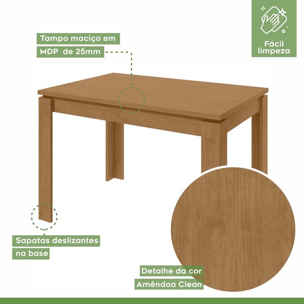 Mesa de jantar 4 lugares retangular athenas amêndoa clean. Transforme sua sala de jantar em um ambiente mais convidativo e moderno com a mesa retangular athenas. Projetada para acomodar confortavelmente 4 lugares, este móvel é a escolha ideal para quem busca funcionalidade e um design sofisticado para as refeições do dia a dia ou para receber convidados.