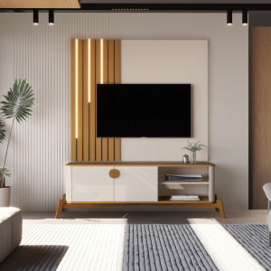 O Rack Comodoro é sofisticado e prático, ideal para complementar a decoração do seu ambiente e organizar seus pertences. Seus pés em madeira maciça e suas portas deslizantes garantem a resistência e a durabilidade do móvel.